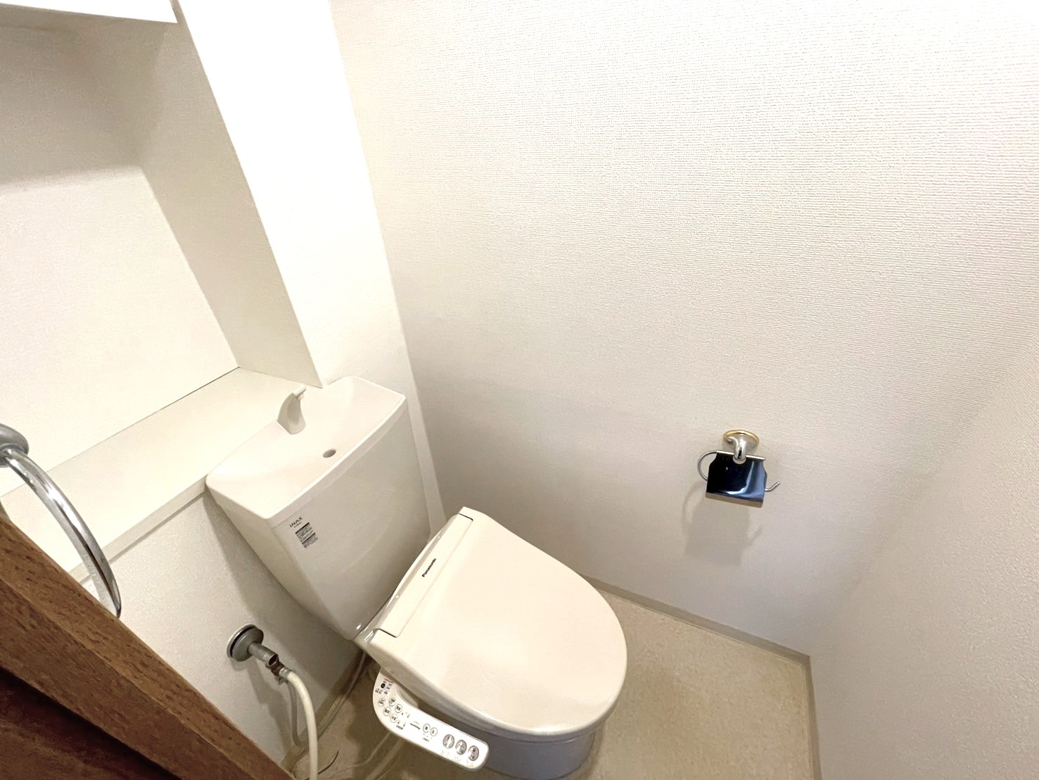 • トイレ写真 シンプルで使い勝手の良いお手洗いです。 上部には収納スペースを完備。 ご見学お待ちしております。 TEL:03-6300-0038